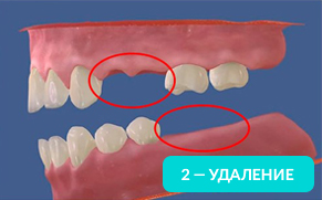 | Зуб разрушен, но корень цел | Зуб удален, но соседи целы |